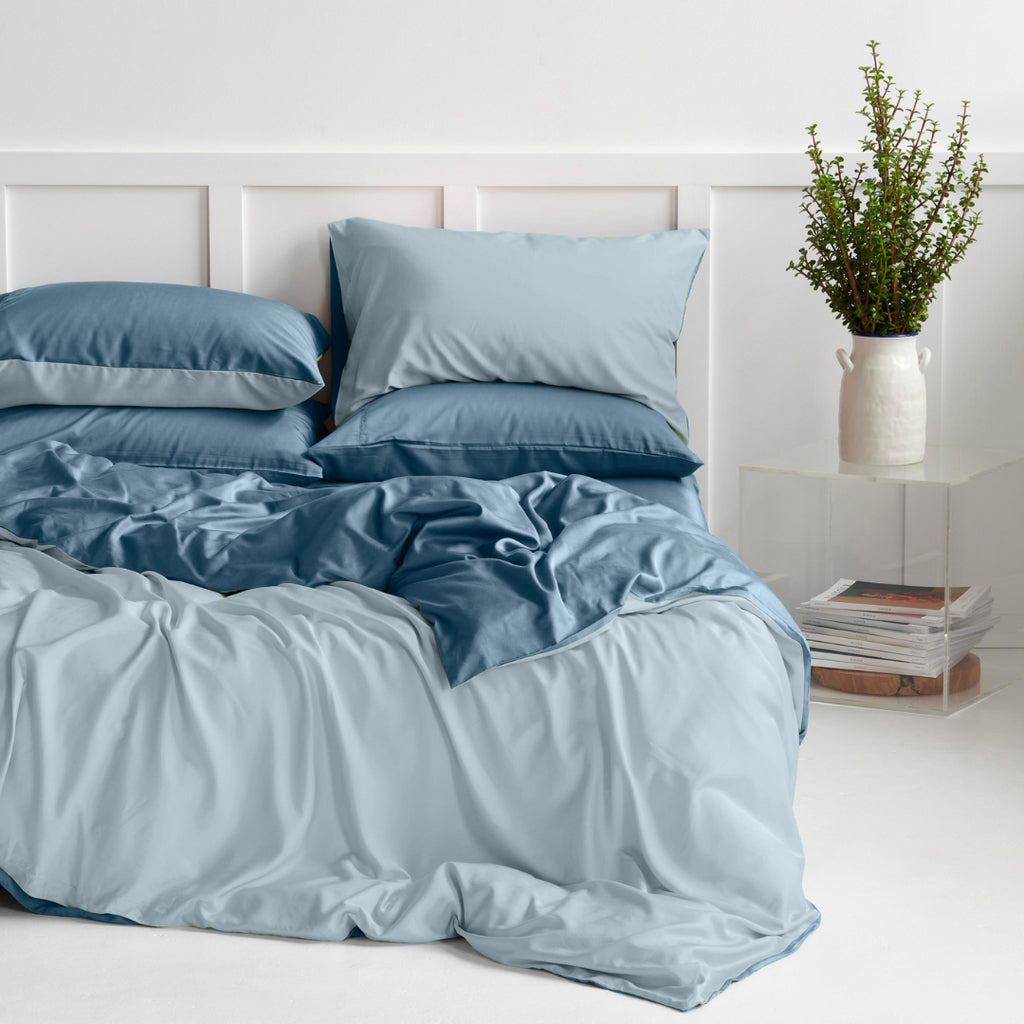 Available in Blue Mirage Quilt Cover Set with Arctic Blue colourway as its reverse.