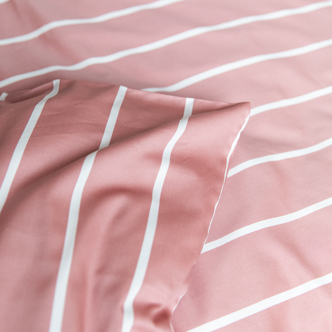 The gorgeous new Brooklyn Stripe Quilt Cover Set is a modern Printed Stripe design to suit all bedroom styles. Blending the unique properties of Organic Bamboo, which include ultimate softness, natural breathability and kindness to sensitive skin, together with the crisp nature of Premium Cotton. Providing luxurious, modern Bedlinen and comfort all year round. This Quilt Cover Set features Printed Stripes on both sides of Quilt Cover and Pillowcases, meaning it is a fully reversible set.