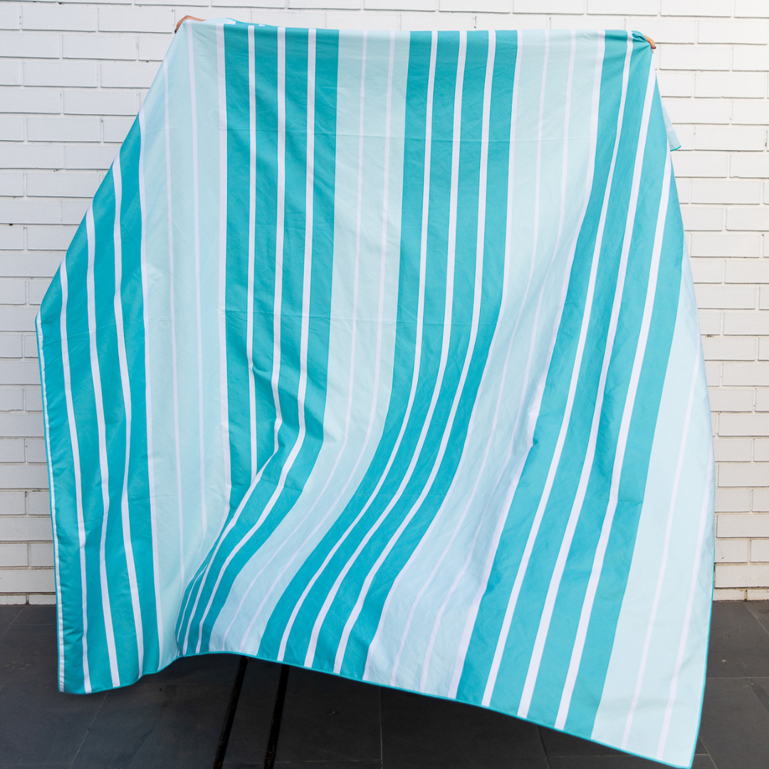 The Newest Addition to our Spring/Summer Collection, the Bondi Stripes Sand-Free Towel for Two is an extra large blanket with so many purposes.