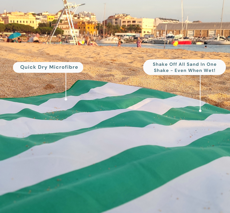 This gorgeous Super Size Towel has been designed in Microfibre Suede to be light weight, compact, quick drying and to fight off the sand at the beach. Even when the Towel is wet, simply shake off the sand and it won't stick. Say goodbye to annoying sticky sand.