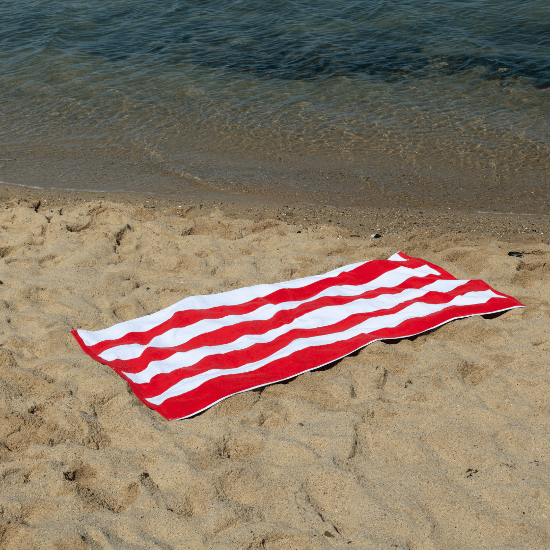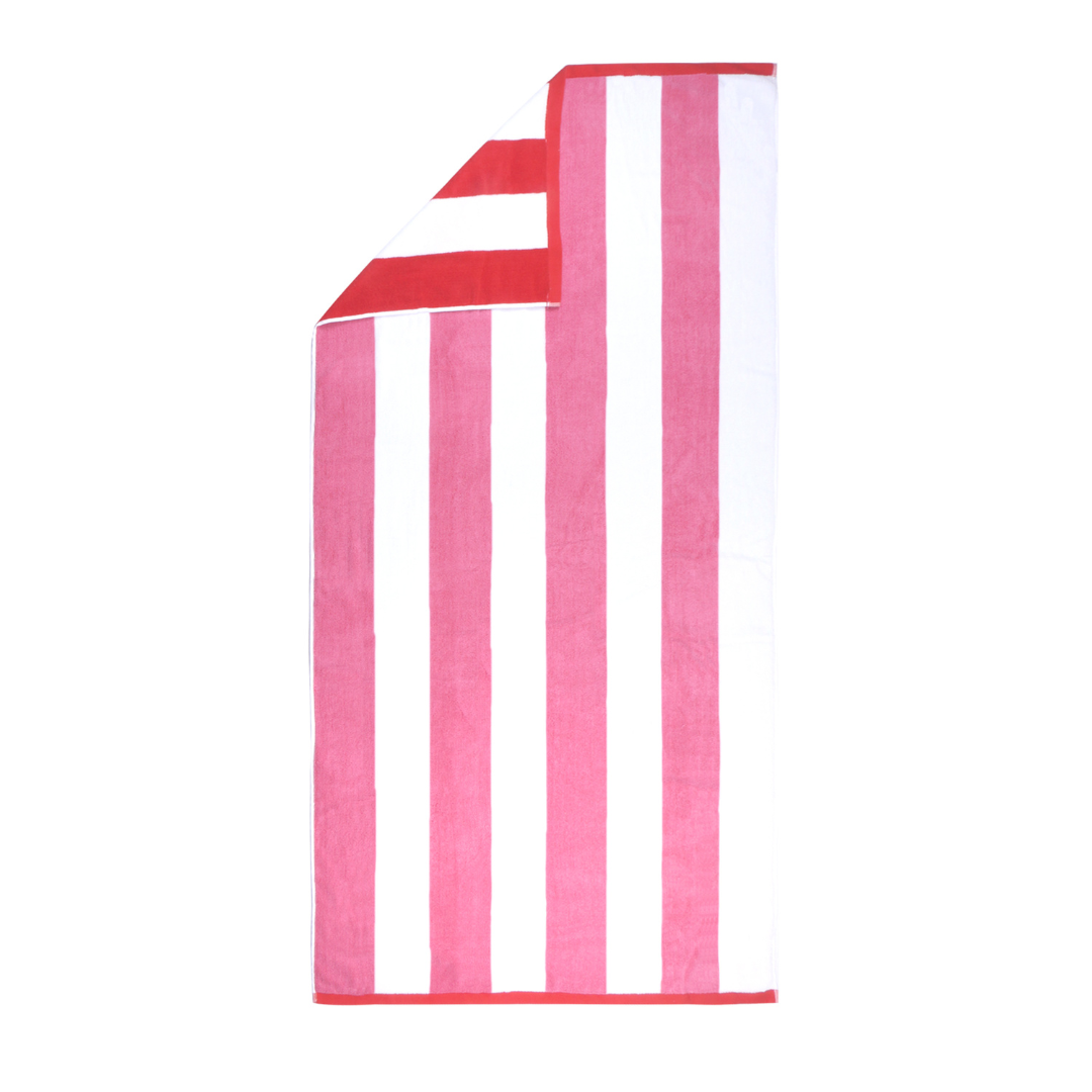 Featuring a Vibrant Pink and White Stripe Design with a fully reversible Cherry Red and White Stripe Backing - this Luxe Terry Towel is suitable for all ages, it's a new season must-have.