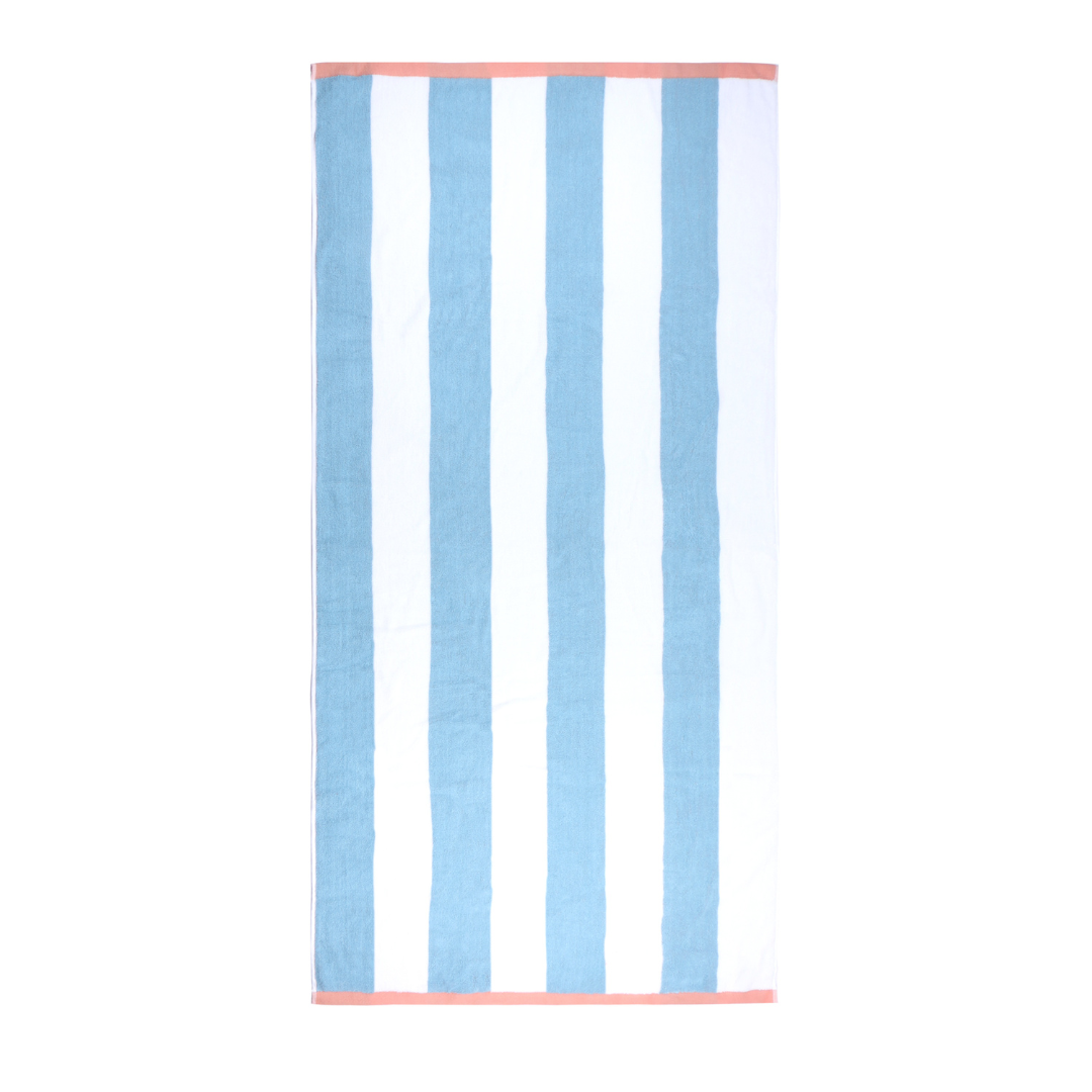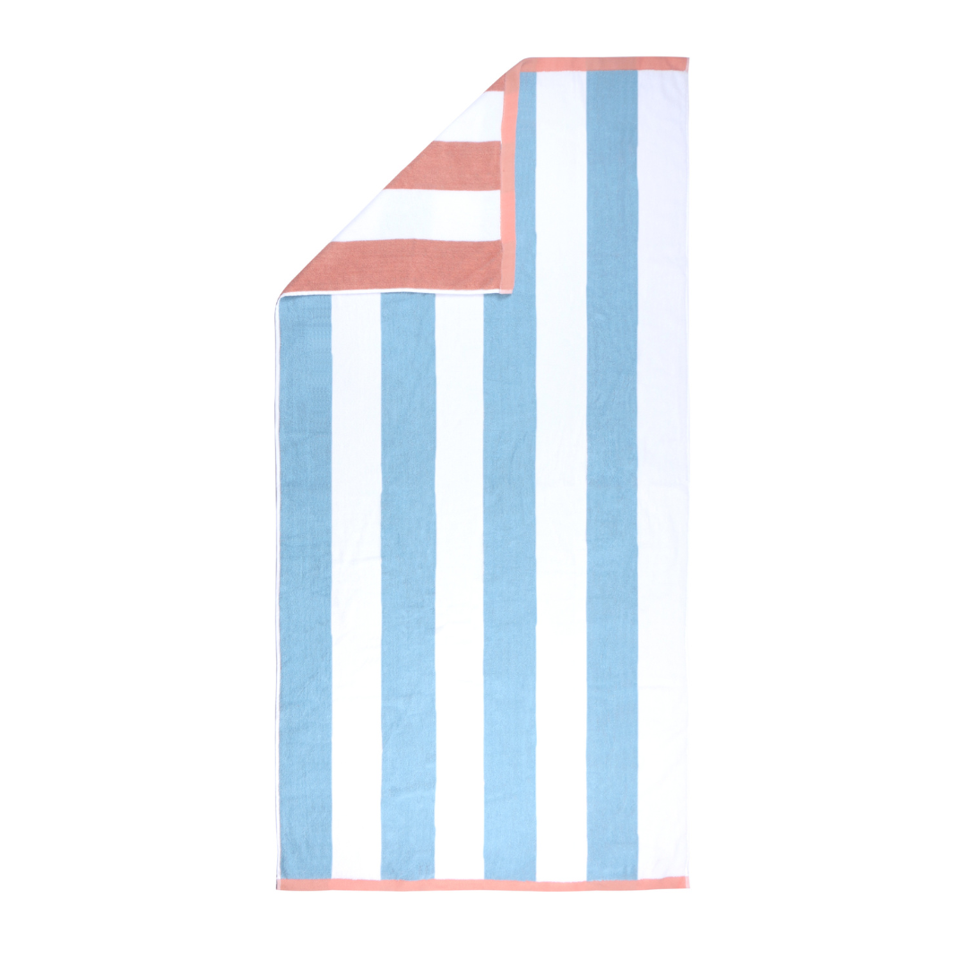 Featuring a Calming Aqua and White Stripe Design with a fully reversible Sunset Orange and White Stripe Backing - this Luxe Terry Towel is suitable for all ages, it's a new season must-have.