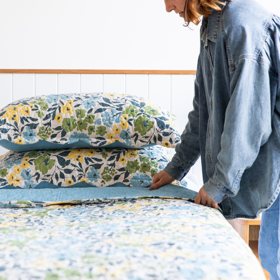 With it's easy care style, and modern pattern, the Meadow Coverlet Set brings modern floral print with the latest Spring/Summer Colours to your bedroom. Featuring a scalloped edging on the Coverlet and matching Pillowcases, the Coverlet Collection is designed for those who want a traditional Coverlet that's easy to style.