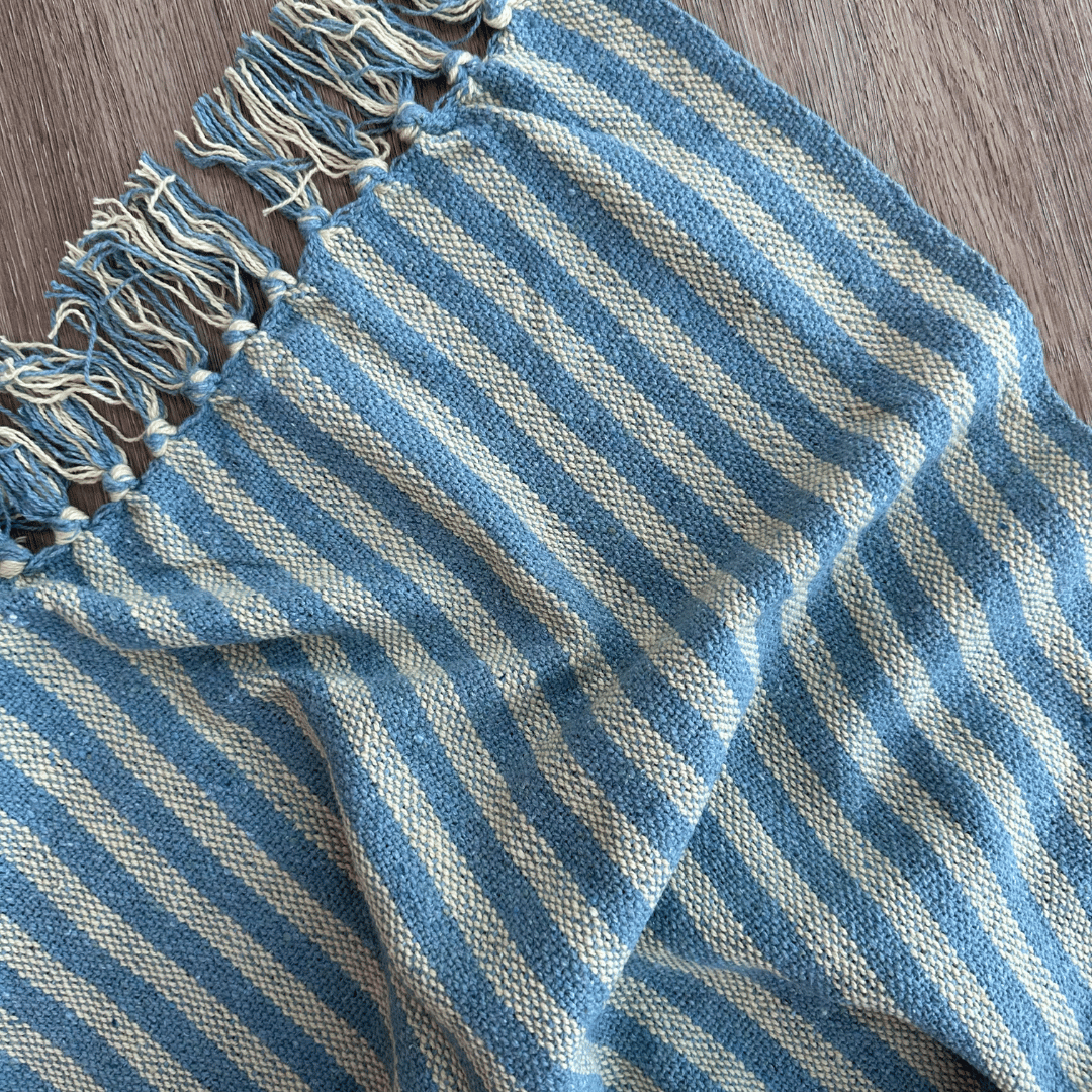 The New Cosy Spring/Summer Essential, the lovely, soft Somers Stripe Cotton Throw. Perfect addition to the end of your bed for a light layer when the nights are cool, or a cosy companion on the couch. Sourced from 100% Recycled Cotton as part of our ongoing commitment to sustainable products for Australian homes. Gorgeous Somers Stripe Cotton Throw is in a Marine Blue / Green contrasted with Soft Yellow Stripes.