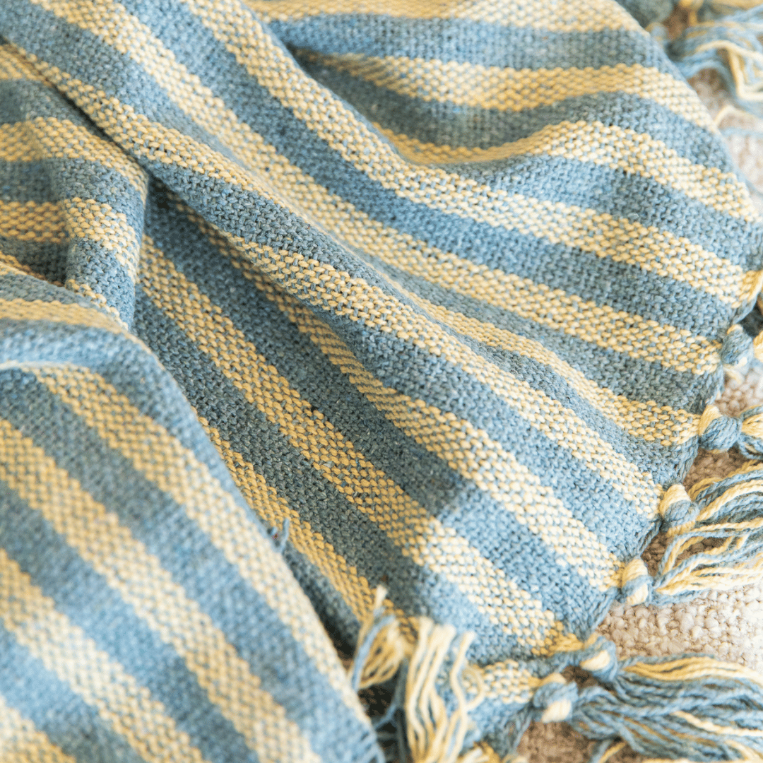 Somers Stripe Cotton Throw - Marine & Yellow