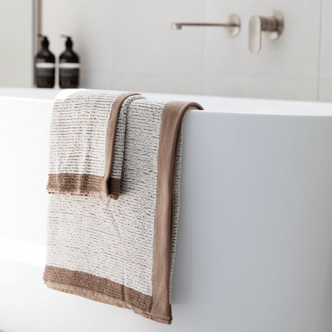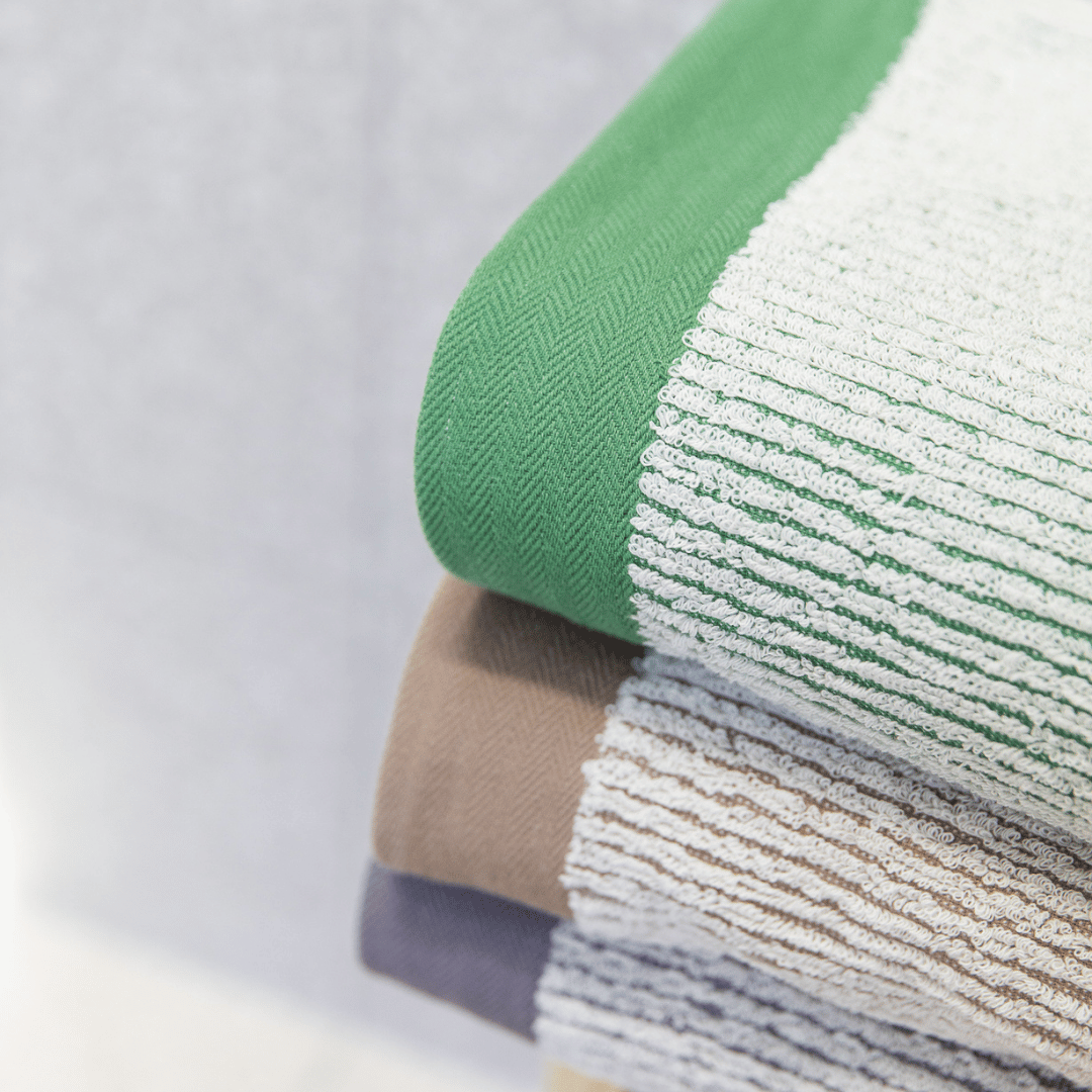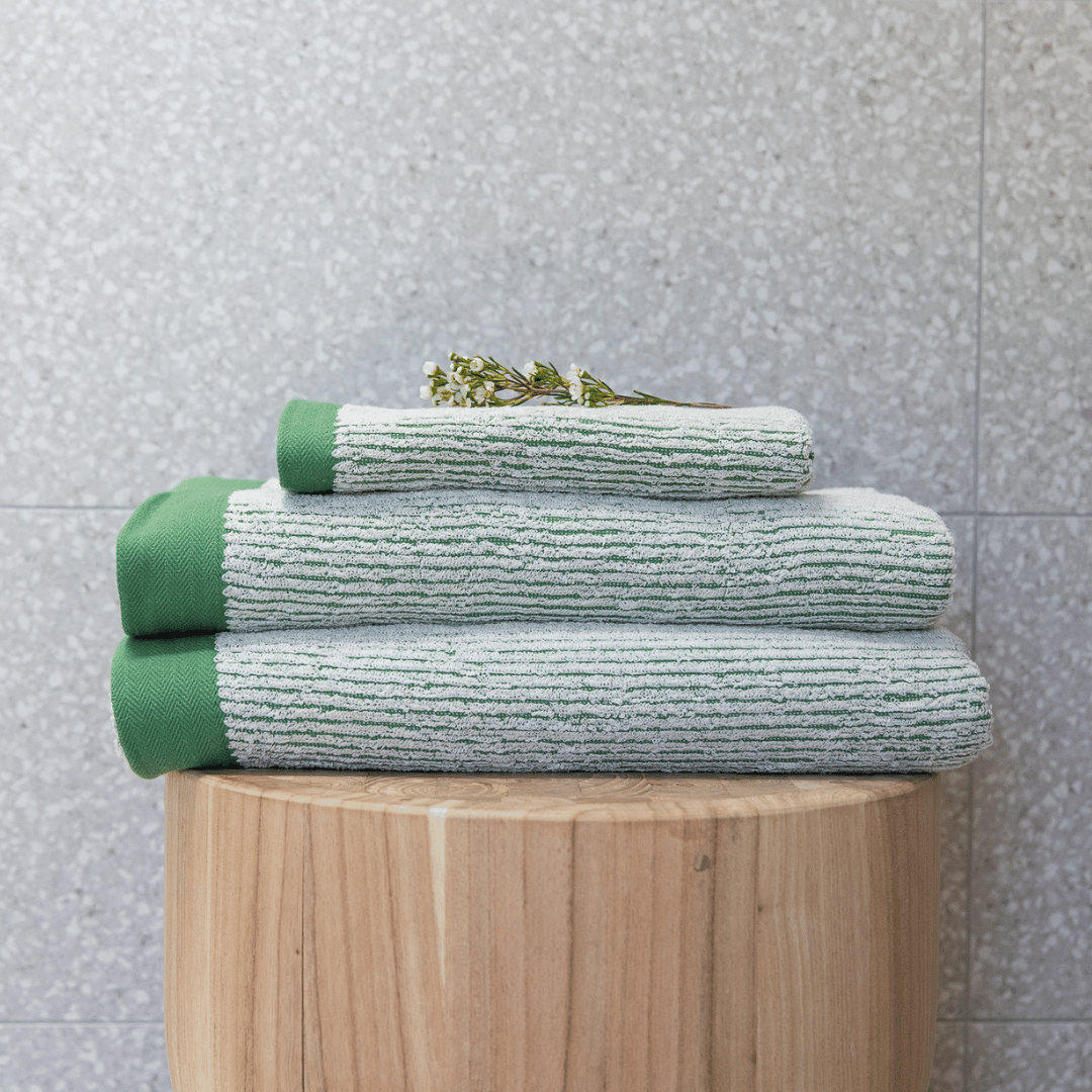 The new season modern Broadway Yarn-Dyed Cotton Towels are luxuriously soft to touch and highly absorbent, defined with a Low Twist Weave to achieve a premium finish with a bold block colour border around all 4 sides of towel.