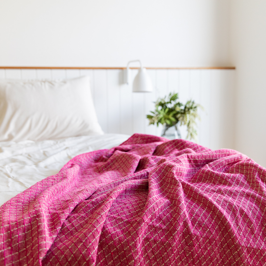 The new Jayda Premium Cotton Diamond Throw is the newest Spring/Summer hero piece for your home. Featuring the vibrant Crimson colourway woven with Natural Yarn to create a subtle but gorgeous diamond pattern with tassel fringed edge. This elegant handcrafted weave provides an effortless yet fun, modern style to elevate your home.