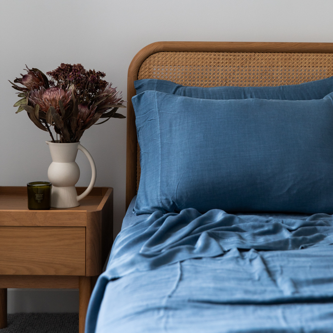 Please note, the colour, Denim has been replaced with the new colour, Indigo and is available in Sheet Sets and matching Quilt Cover Sets in all sizes.